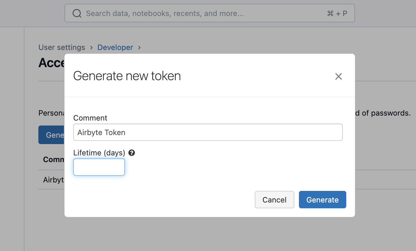 Enter a description for the token and how long it will be valid for (or leave blank for a permanent token):