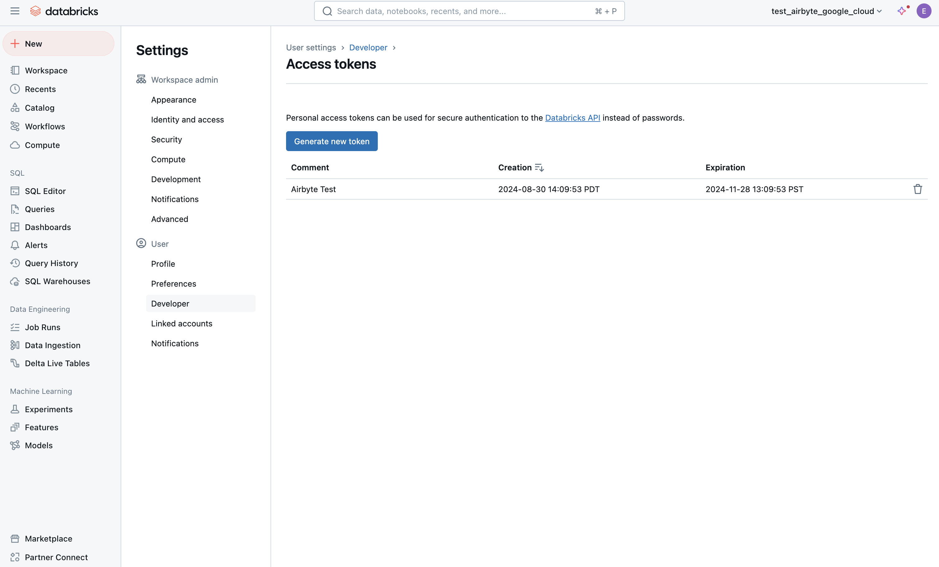 Access Token (Recommended for Google Cloud deployments of Databricks)